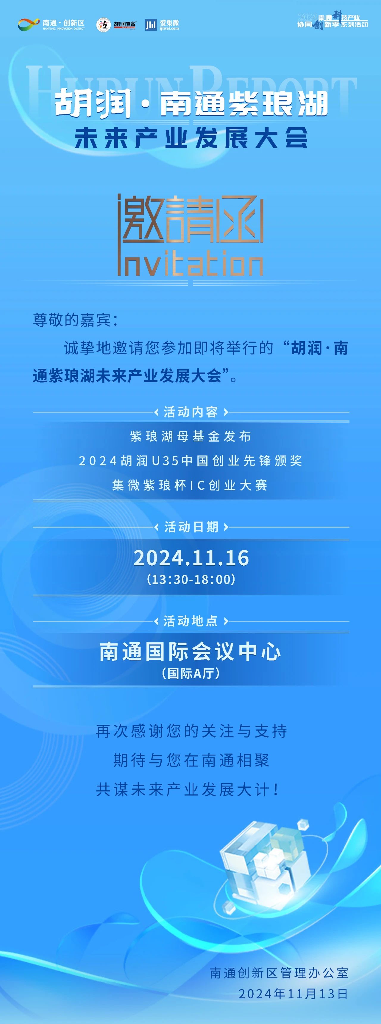 邀您參加!胡潤·南通紫瑯湖未來產(chǎn)業(yè)發(fā)展大會將于本周六舉辦