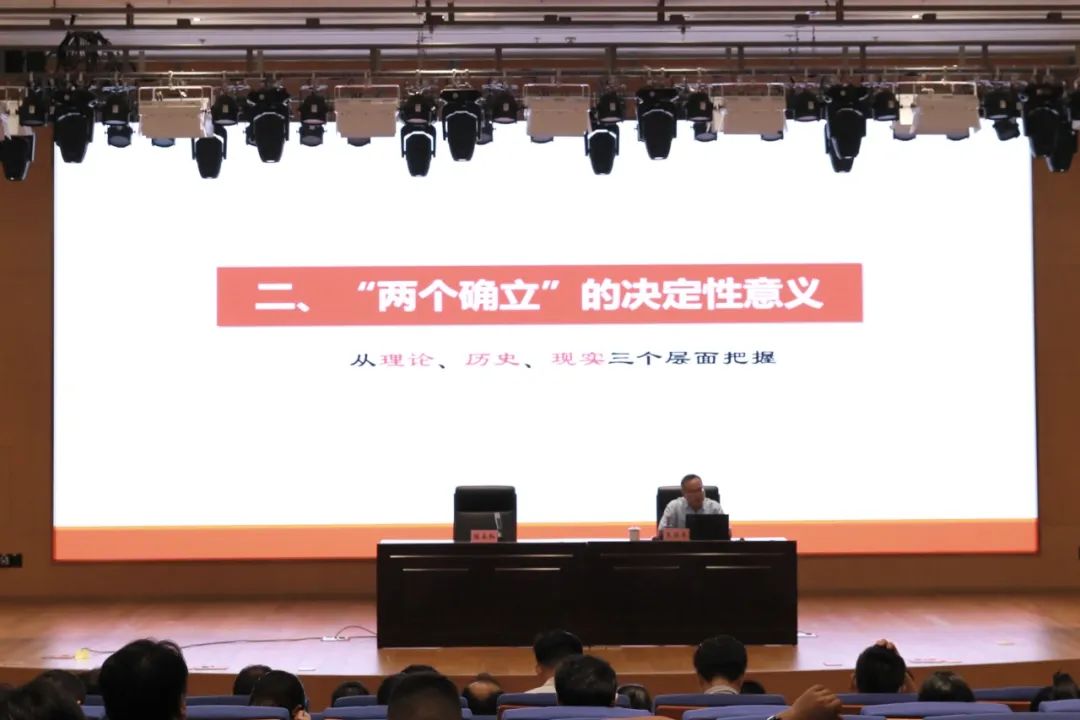 朱聯(lián)平從“兩個(gè)確立”的形成過(guò)程、“兩個(gè)確立”的決定性意義、堅(jiān)定“兩個(gè)確立”的政治自覺(jué)等三個(gè)方面進(jìn)行講解,圍繞理論、歷史、現(xiàn)實(shí)三個(gè)層面全面闡釋了“兩個(gè)確立”的深刻內(nèi)涵。